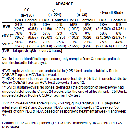 improved SVR rates across all IL28B genotypes in the ADVANCE