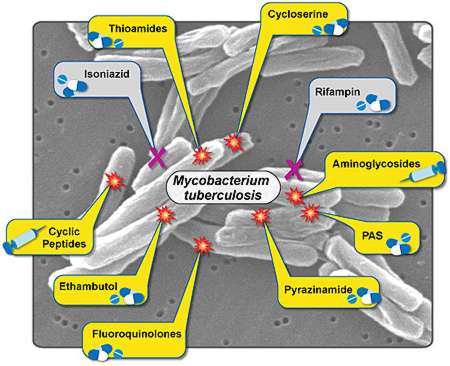 MDR TB occurs when a Mycobacterium tuberculosis strain is resistant to isoniazid and rifampin, two of the most powerful first-line drugs. To cure MDR TB, healthcare providers must turn to a combination of second-line drugs, several of which are shown here.